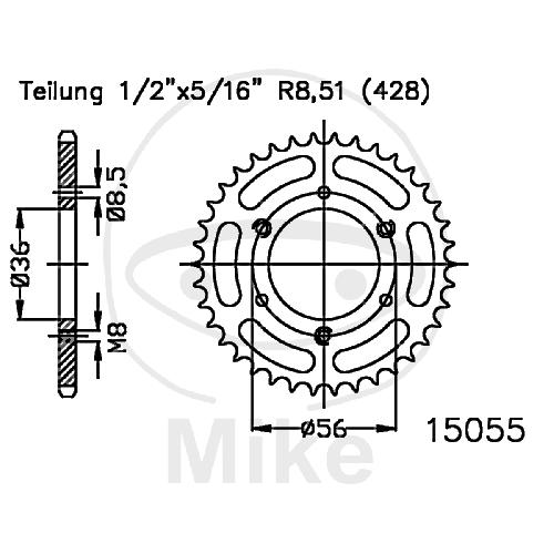 Kettenrad, 32Z, Teil.: 428 schwarz, Innen Ø : 036, Lochkr.: 056