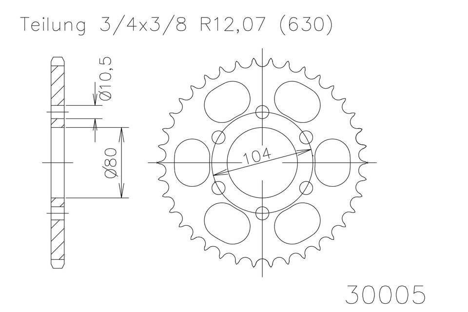 Kettenrad 33 Zähne Stahl 630er Teilung (3/4x3/8)