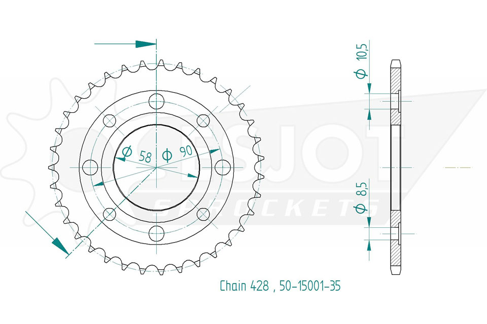 Kettenrad 35 Zähne Stahl 428er Teilung (1/2x5/16)
