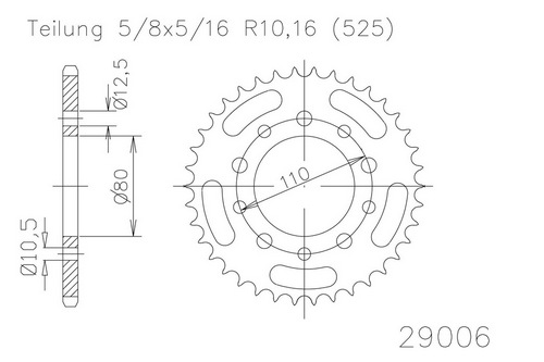 Kettenrad 36 Zähne Stahl 525er Teilung (5/8x5/16)