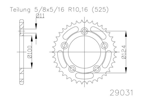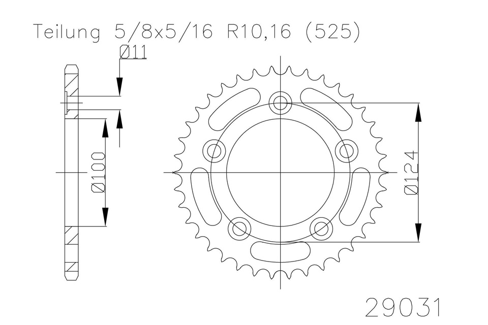 Kettenrad 36 Zähne Stahl 525er Teilung (5/8x5/16)