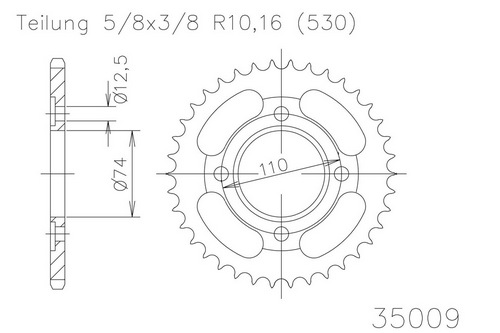 Kettenrad 36 Zähne Stahl 530er Teilung (5/8x3/8)