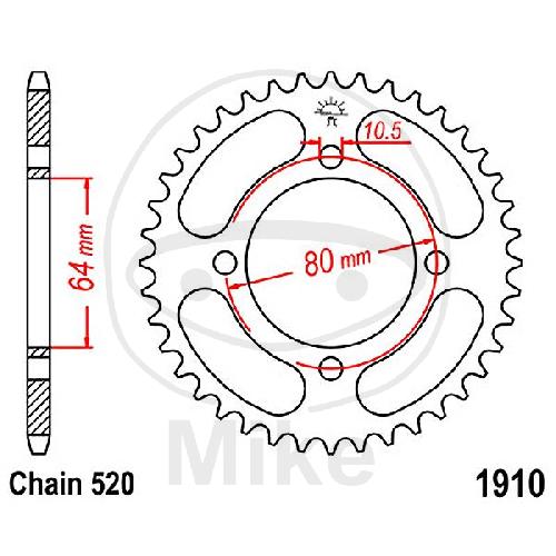 Kettenrad, 36Z, Teil.: 520, Innen Ø : 064, Lochkr.: 080