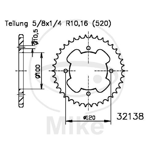 Kettenrad, 36Z, Teil.: 520, Innen Ø : 100, Lochkr.: 120