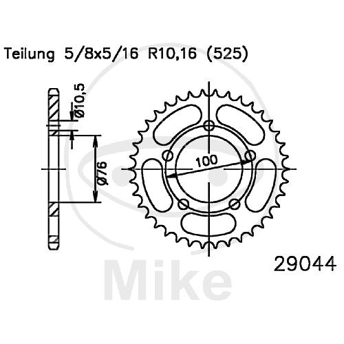Kettenrad, 36Z, Teil.: 525 schwarz, Innen Ø : 076, Lochkr.: 100
