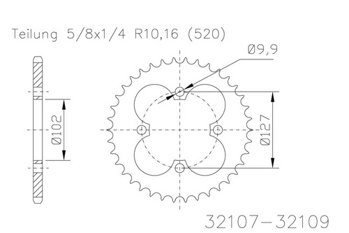 Kettenrad 37 Zähne Stahl 520er Teilung (5/8x1/4)