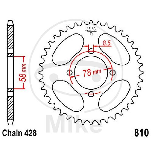 Kettenrad, 37Z, Teil.: 428, Innen Ø : 058, Lochkr.: 078