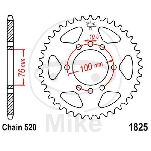 Kettenrad, 37Z, Teil.: 520, Innen Ø : 076, Lochkr.: 100