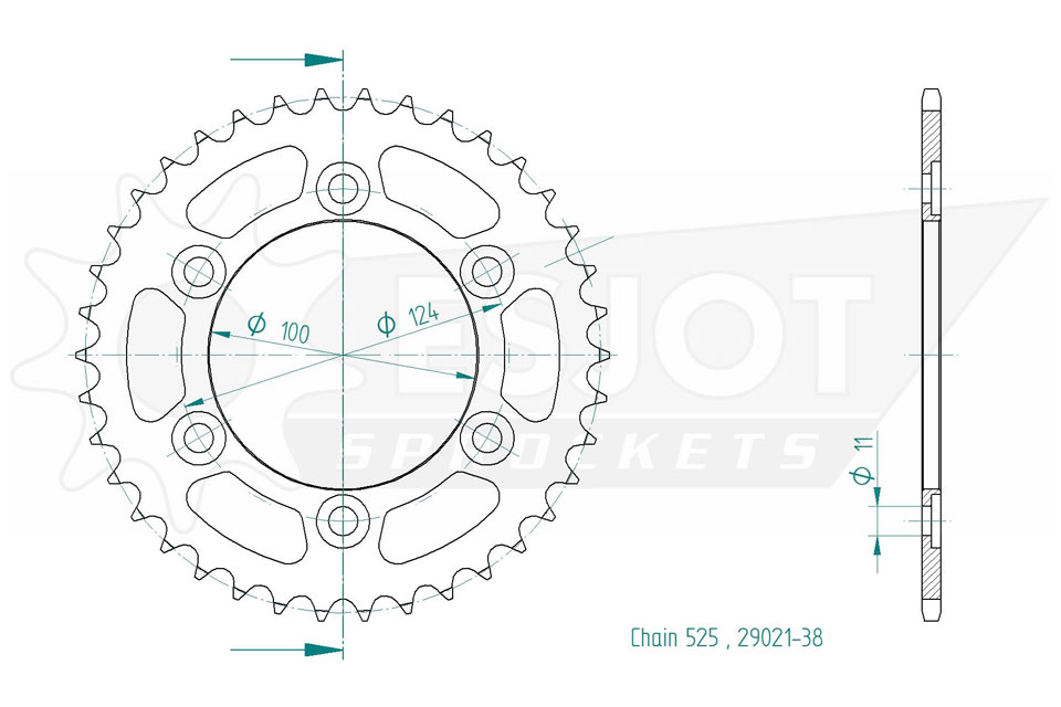 Kettenrad 38 Zähne Stahl 525er Teilung (5/8x5/16)