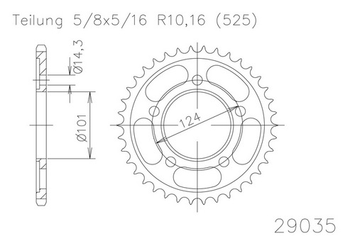 Kettenrad 38 Zähne Stahl 525er Teilung (5/8x5/16)