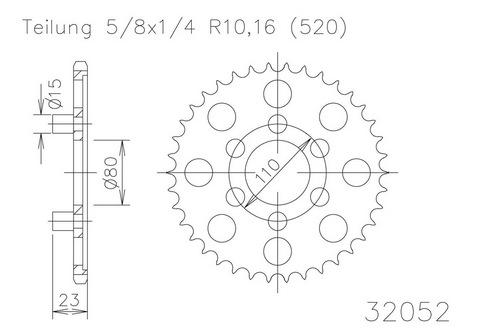 Kettenrad 38 Zähne Stahl 520er Teilung (5/8x1/4)