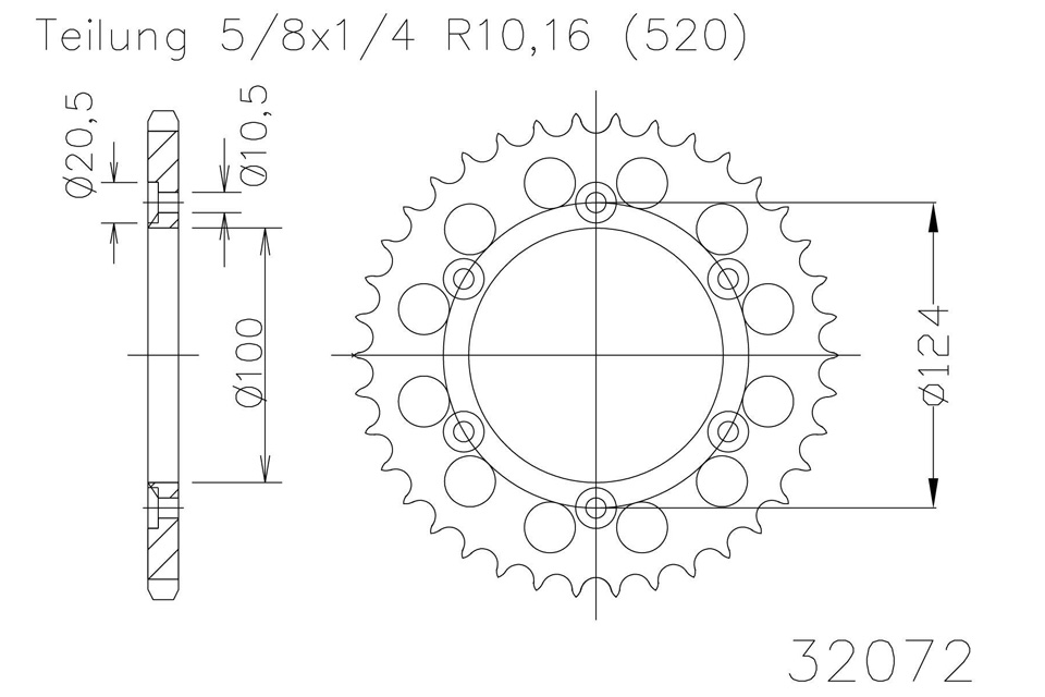 Kettenrad 38 Zähne Stahl 520er Teilung (5/8x1/4)