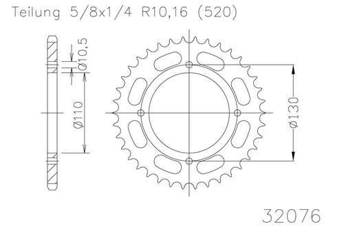 Kettenrad 38 Zähne Stahl 520er Teilung (5/8x1/4)
