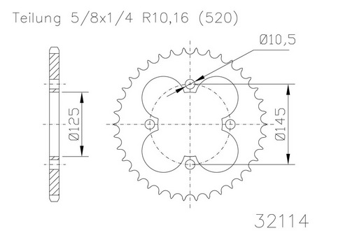 Kettenrad 38 Zähne Stahl 520er Teilung (5/8x1/4)
