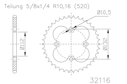 Kettenrad 38 Zähne Stahl 520er Teilung (5/8x1/4)