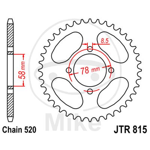 Kettenrad, 38Z, Teil.: 520, Innen Ø : 058, Lochkr.: 078