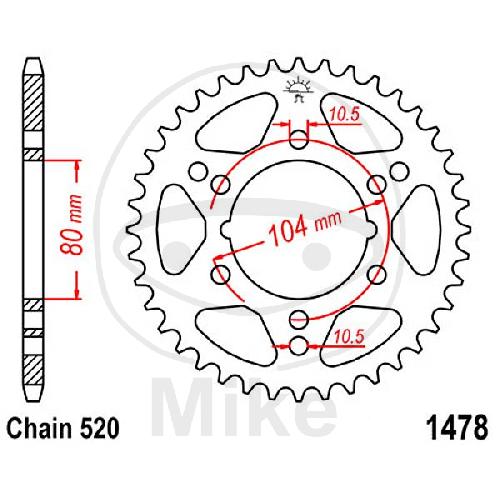 Kettenrad, 38Z, Teil.: 520, Innen Ø : 080, Lochkr.: 104