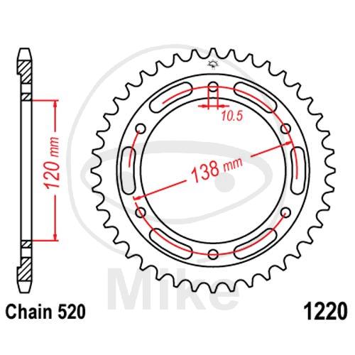 Kettenrad, 38Z, Teil.: 520, Innen Ø : 120, Lochkr.: 138