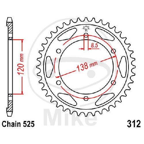 Kettenrad, 38Z, Teil.: 525, Innen Ø : 120, Lochkr.: 138