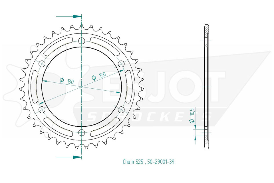 Kettenrad 39 Zähne Stahl 525er Teilung (5/8x5/16)