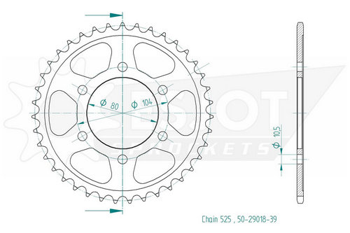 Kettenrad 39 Zähne Stahl 525er Teilung (5/8x5/16)