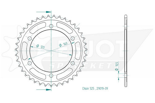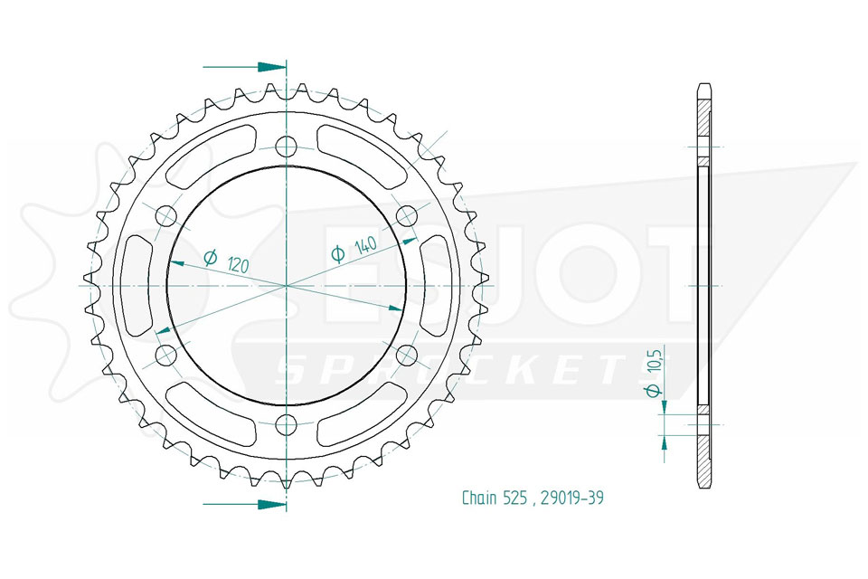 Kettenrad 39 Zähne Stahl 525er Teilung (5/8x5/16)