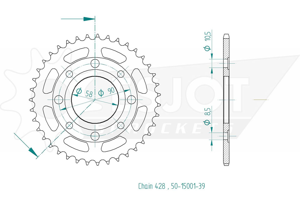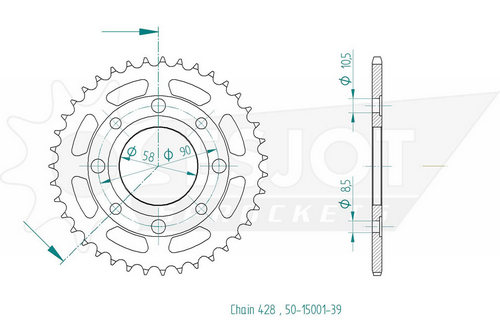 Kettenrad 39 Zähne Stahl 428er Teilung (1/2x5/16)