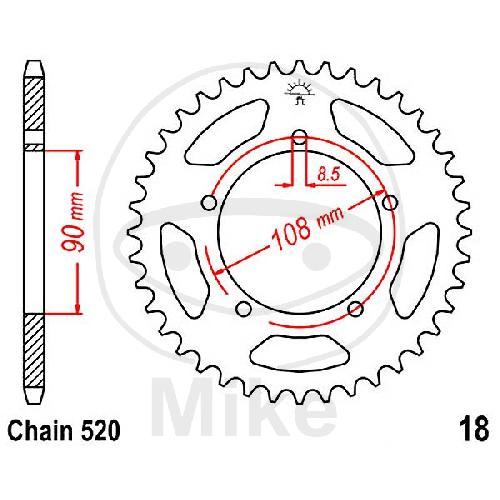Kettenrad, 39Z, Teil.: 520, Innen Ø : 090, Lochkr.: 108