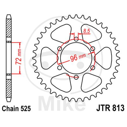 Kettenrad, 39Z, Teil.: 525, Innen Ø : 072, Lochkr.: 096