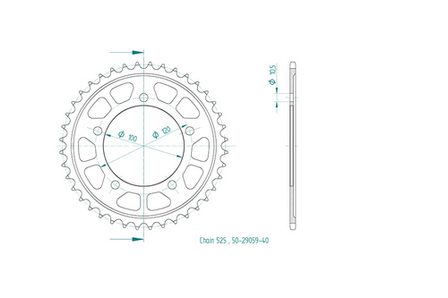 Kettenrad 40 Zähne Stahl 525er Teilung (5/8x5/16)