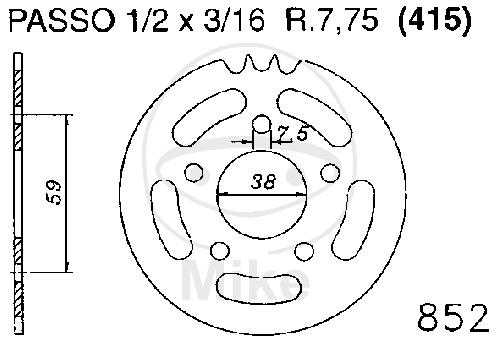 Kettenrad, 40Z, Teil.: 415 schwarz, Innen Ø : 038, Lochkr.: 059