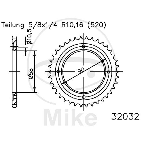 Kettenrad, 40Z, Teil.: 520, Innen Ø : 058, Lochkr.: 090
