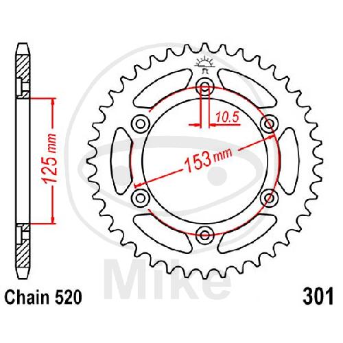 Kettenrad, 40Z, Teil.: 520, Innen Ø : 125, Lochkr.: 153