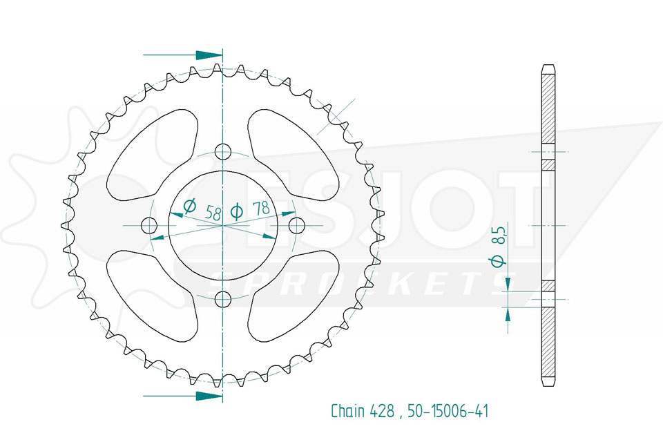Kettenrad 41 Zähne Stahl 428er Teilung (1/2x5/16)