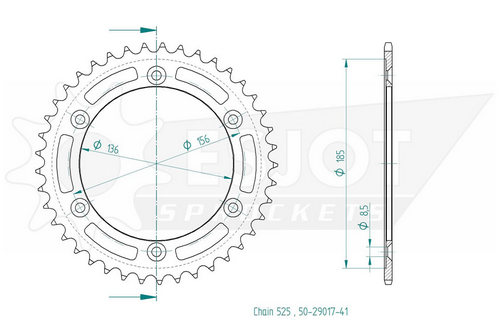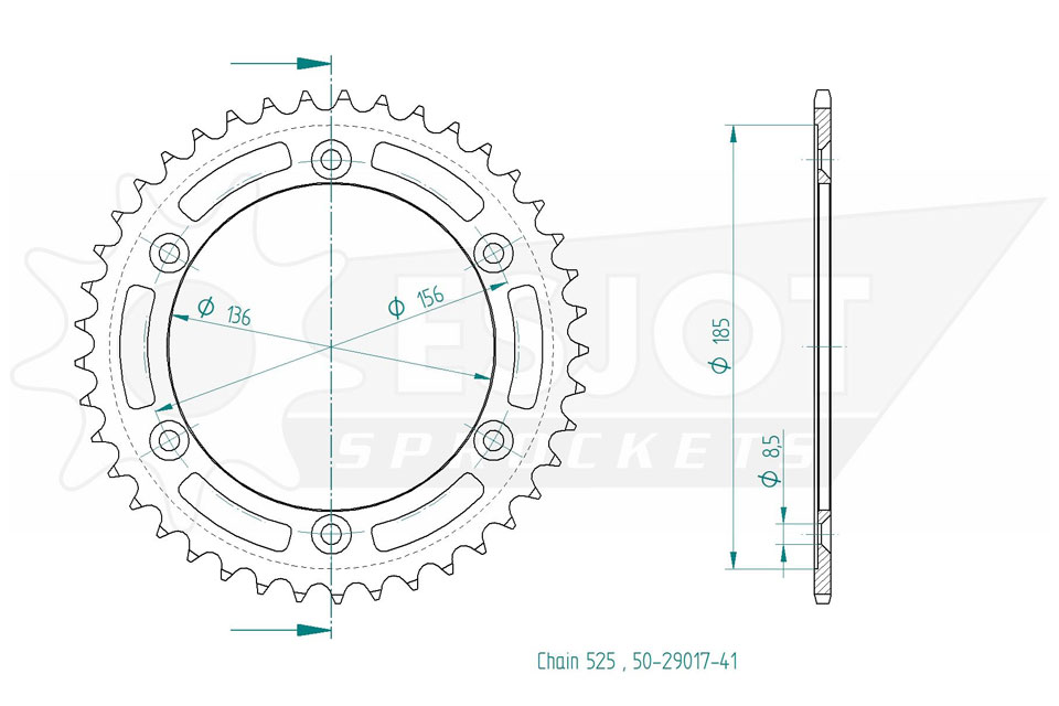 Kettenrad 41 Zähne Stahl 525er Teilung (5/8x5/16)