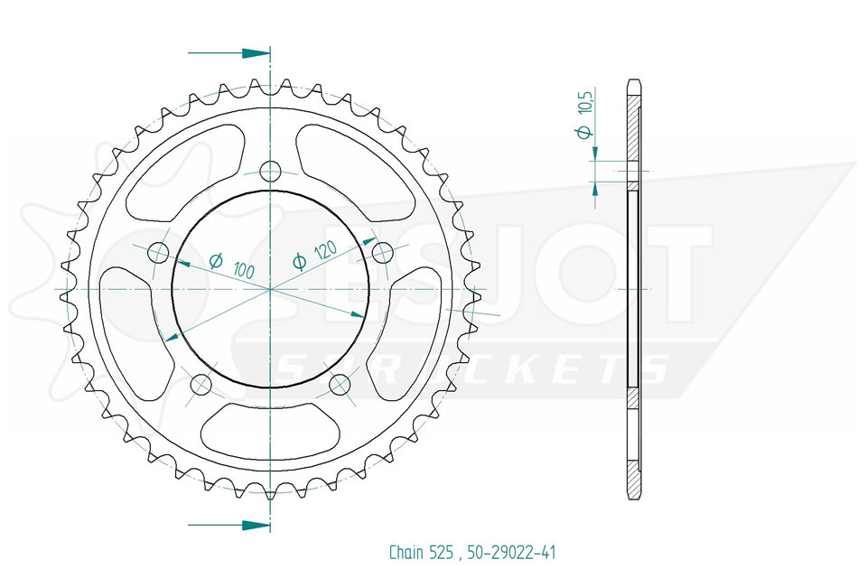 Kettenrad 41 Zähne Stahl 525er Teilung (5/8x5/16)