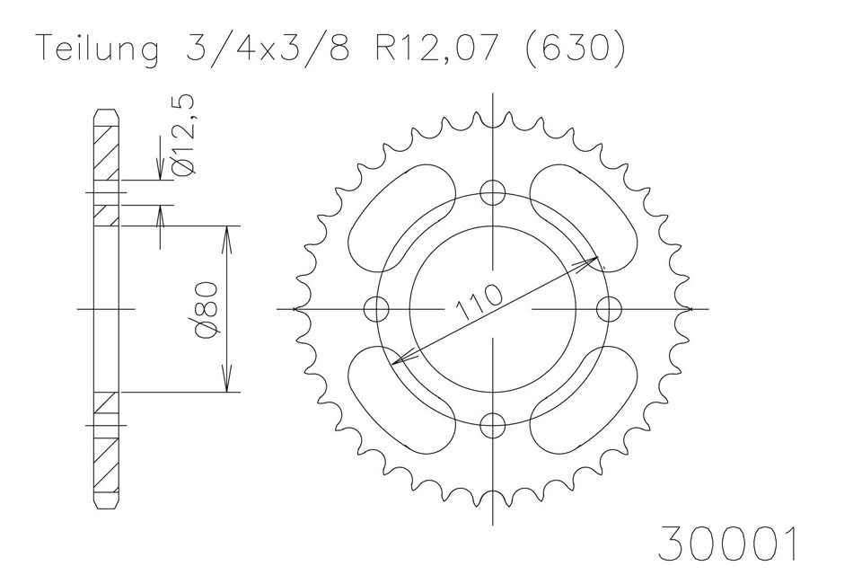 Kettenrad 41 Zähne Stahl 630 Teilung (3/4x3/8)