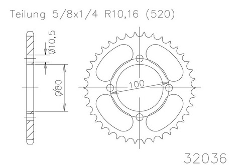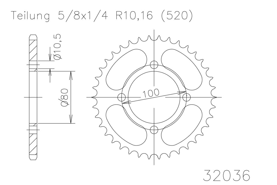 Kettenrad 41 Zähne Stahl 520er Teilung (5/8x1/4)