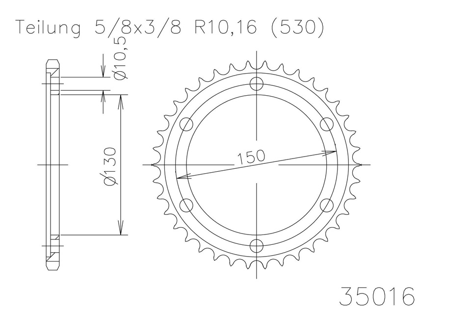 Kettenrad 41 Zähne Stahl 530er Teilung (5/8x3/8)