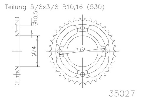 Kettenrad 41 Zähne Stahl 530er Teilung (5/8x3/8)