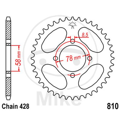Kettenrad, 41Z, Teil.: 428, Innen Ø : 058, Lochkr.: 078