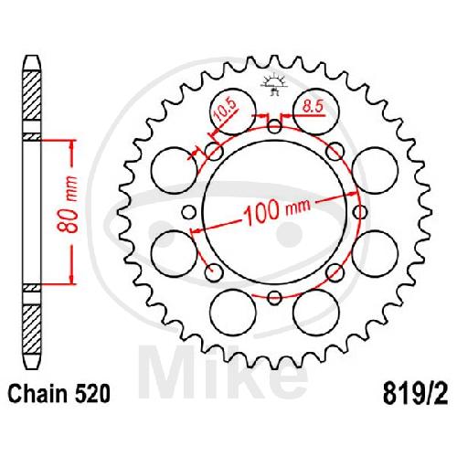 Kettenrad, 41Z, Teil.: 520, Innen Ø : 080, Lochkr.: 100