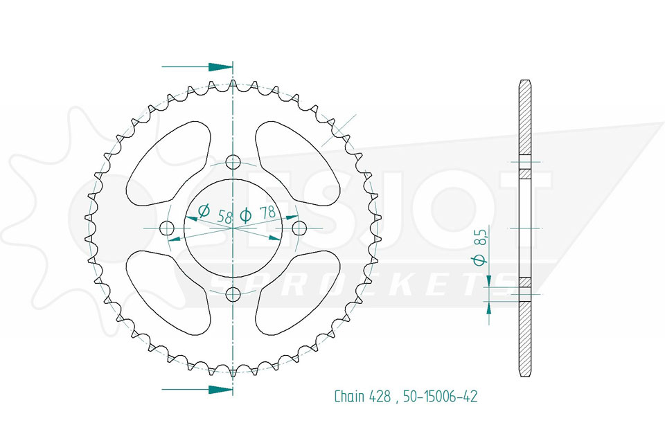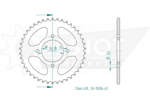 Kettenrad 42 Zähne Stahl 428er Teilung (1/2x5/16)