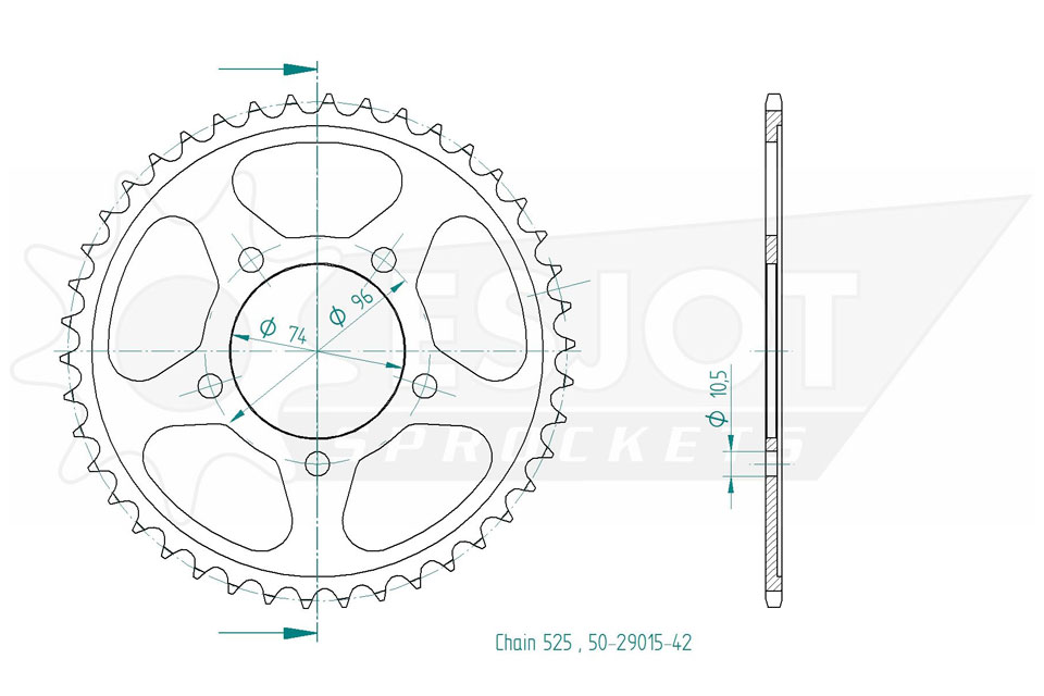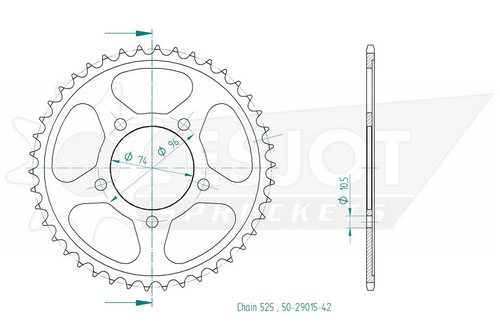 Kettenrad 42 Zähne Stahl 525er Teilung (5/8x5/16)