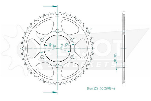 Kettenrad 42 Zähne Stahl 525er Teilung (5/8x5/16)