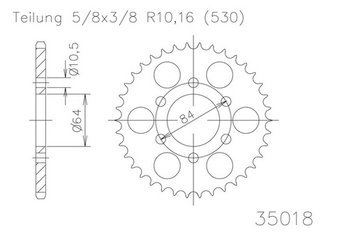 Kettenrad 42 Zähne Stahl 530er Teilung (5/8x3/8)