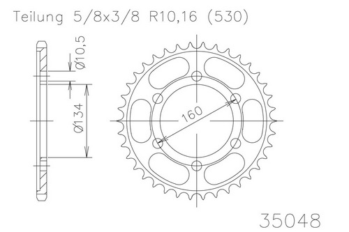 Kettenrad 42 Zähne Stahl 530er Teilung (5/8x3/8)