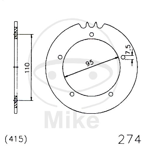 Kettenrad, 42Z, Teil.: 415 schwarz, Innen Ø : 095, Lochkr.: 110