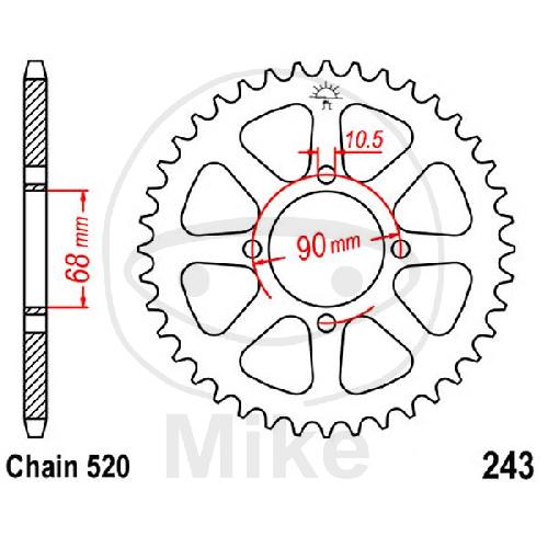 Kettenrad, 42Z, Teil.: 520, Innen Ø : 068, Lochkr.: 090