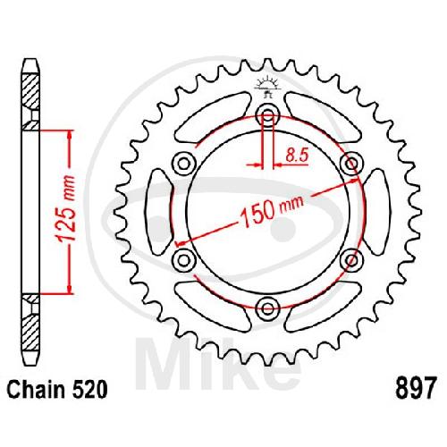 Kettenrad, 42Z, Teil.: 520, Innen Ø : 125, Lochkr.: 150